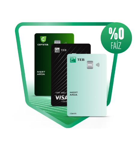 Siz de hemen CEPTETEB’li olarak TEB Kredi Kartı’na başvurun, 25.000 TL’ye varan ihtiyaçların için faizsiz Taksitli Nakit Avans fırsatından yararlanın.